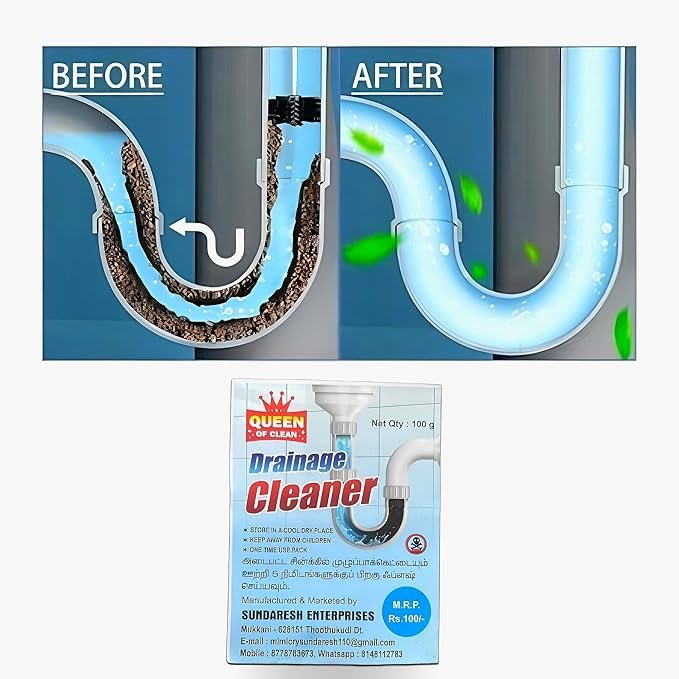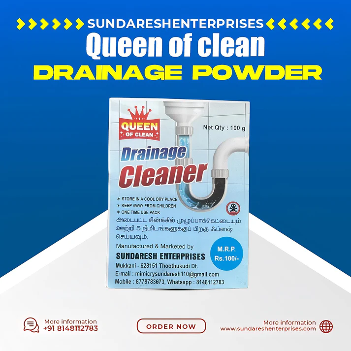 Drainage powder is used to clear clogs in drains and pipes.Â