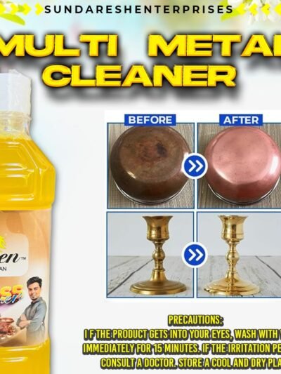 ₹300.00Original price was: ₹300.00.₹199.00Current price is: ₹199.00.Bring back the original shine of your treasured metal items with Queen of Clean Multi Metal Cleaner from Sundaresh Enterprises. Specially formulated to clean and polish Brass | Bronze | Copper | Panchaloha and Stainless Steel . this cleaner removes tough tarnish and stains without damaging the surface. Not suitable for Silver, Aluminum, or Gold. Perfect for home, temple, and decorative metalware maintenance. Multi-Metal Cleaning Power – Effectively cleans Brass, Bronze, Copper, Panchaloha, and Stainless Steel. Instant Shine – Restores the original luster and brilliance in minutes. Before & After Visible Results – Removes tarnish, dullness, and oxidation. Easy to Use – Apply, rub, rinse, and watch your metals shine again. Not for All Metals – Avoid using on Silver, Aluminum, or Gold to prevent damage. Safe Storage – Store in a cool, dry place. Safety Precaution – In case of contact with eyes, rinse with water for 15 minutes and seek medical help if irritation persists.Add to cart -